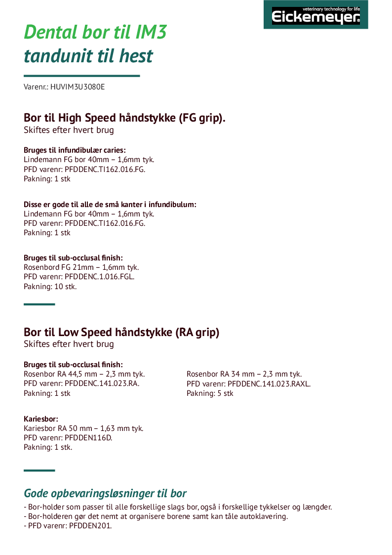 iM3 Equine tandunits fås i følgende variationer: