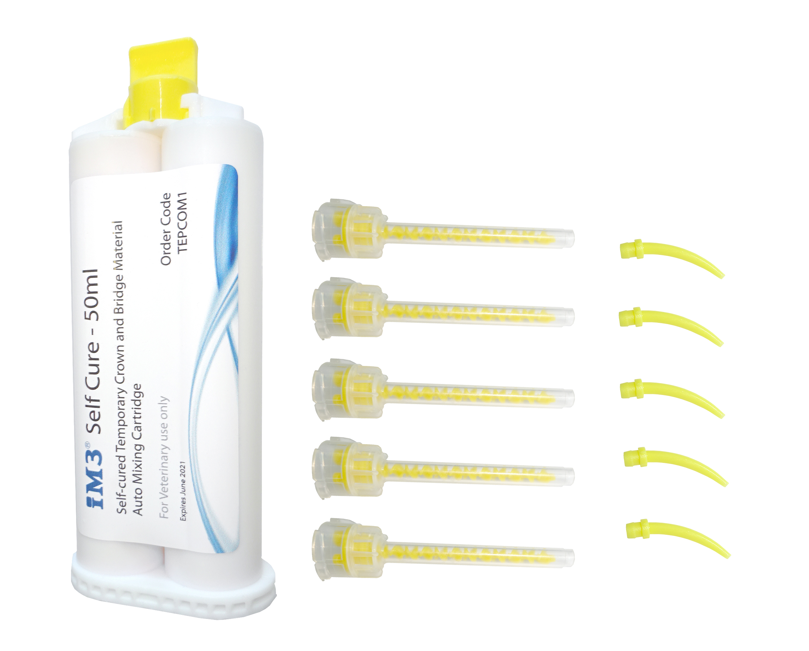 iM3 Self Cure er et midlertidigt kompositmateriale til midlertidige kroner og reparationer af kæbefrakturer osv.